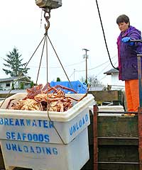 The data collected during dockside sampling are used to generate size frequencies by fishing area for the commercial red king crab fishery. In combination with logbook data, the port sampling data is useful in determining stock composition and in evaluating whether the stock composition of the commercial catch mirrors the findings of the summer survey. Size frequencies and shell condition information is also useful for evaluating year class cohorts for areas not surveyed. Information on limb loss, disease, and carapace injuries is also useful for gauging overall population health.