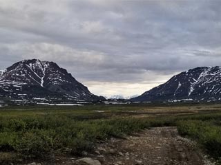 This project took place at multiple trailheads along the Denali Highway in the foothills of the Amphitheater Mountains within the Tangle Lakes Archaeological District and Clearwater Creek Controlled Use Area. The trails are used by the public for hiking, fishing, hunting, camping, berry picking, and off-road vehicle use. Hunters primarily use the area to hunt the Nelchina caribou herd and moose.