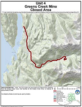 Area Description: Unit 4 - The road system and associated mine infrastructure extending from the Greens Creek Hawk Inlet facilities to the Greens Creek Mine, a distance of approximately 9 miles