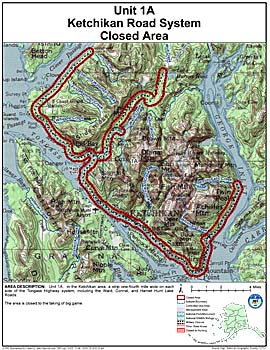 Area Description: Unit 1(A) in the Ketchikan area, a strip one-fourth mile wide on each side of the Tongass Highway system, including the Ward, Connel, and Harriet Hunt Lake Roads