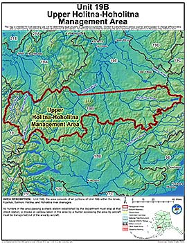 Area Description: Upper Holitna-Hoholitna Management Area: the area consists of all portions of Unit 19(B) within the Aniak, Kipchuk, Salmon, Holitna and Hoholitna river drainages
