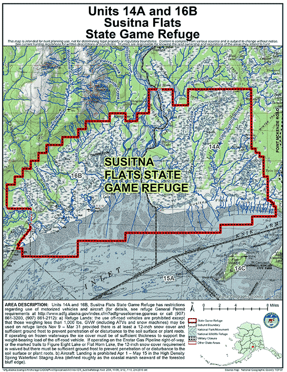 - Area Description: Units 14 and 16 - The Susitna Flats State Game Refuge, as described in AS 16.20.036