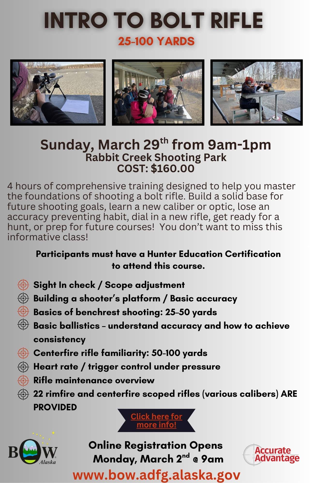 Location and Date: Rabbit Creek Shooting Park, Sunday, March 29, 9:00am-1:00pm