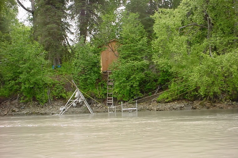 The Yentna River is a tributary of the Susitna River. The Yentna River sonar site is located approximately six miles upstream from the confluence of the two rivers. The sonar site is not currently being used for management, but is in a research only phase. The sonar site uses a type of sonar technology known as DIDSON to detect fish. The Yentna River is very silty.