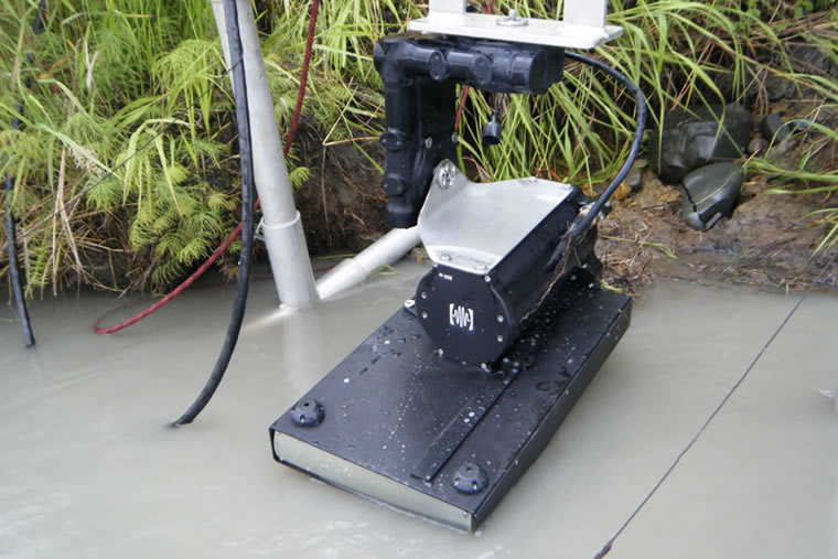 To keep silt deposits from building up in the DIDSON transducer we wrap it in a silt sock.