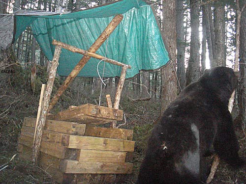ADF&G wildlife technician Jeff Jemison aimed a remote trail camera at the carcass of a dead moose north of Juneau in the spring of 2010 and drew in a bear that had recently emerged from hibernation.
