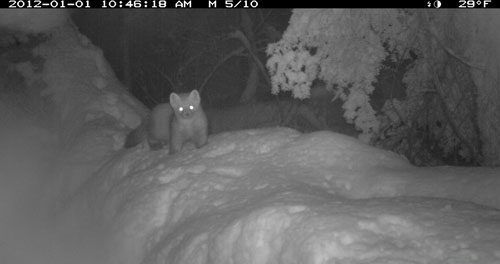 ADF&G biologists are monitoring animal activity at the site of wolverine live traps and documenting some unexpected visitors, including marten and brown bear.