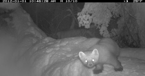ADF&G biologists are monitoring animal activity at the site of wolverine live traps and documenting some unexpected visitors, including marten and brown bear. -