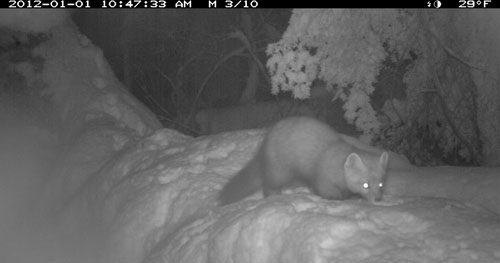 ADF&G biologists are monitoring animal activity at the site of wolverine live traps and documenting some unexpected visitors, including marten and brown bear. -