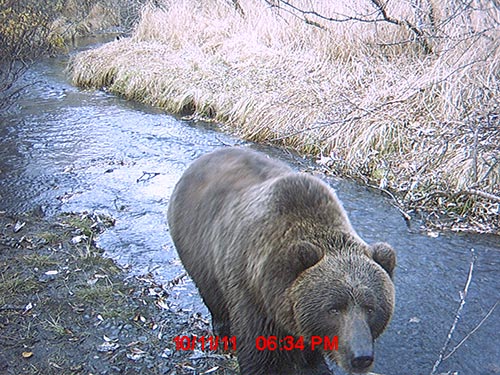 Robin Overall of Kodiak places her trail cameras on established bear trails, in view of rub trees, and near streams. She provided an amazing assortment of images featuring the famed Kodiak brown bears. -