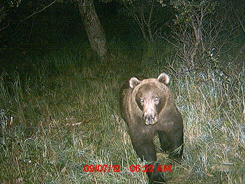 Robin Overall of Kodiak places her trail cameras on established bear trails, in view of rub trees, and near streams. She provided an amazing assortment of images featuring the famed Kodiak brown bears. -