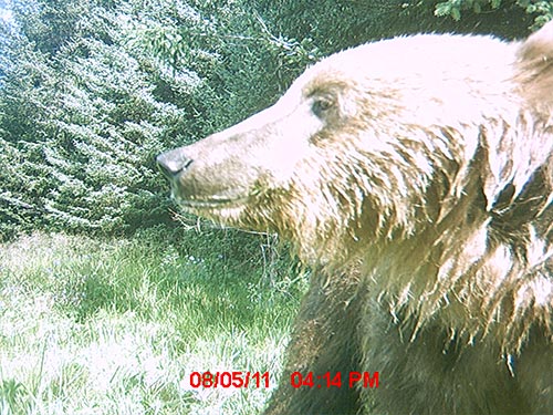 ADF&G wildlife technician Jeff Jemison aimed a remote trail camera at the carcass of a dead moose north of Juneau in the spring of 2010 and drew in a bear that had recently emerged from hibernation. -
