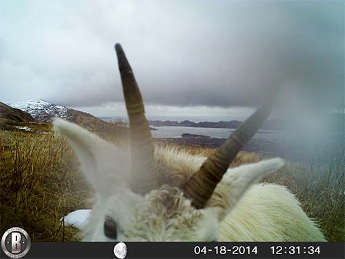 Robin Overall of Kodiak is an avid and skilled trail camera photographer. She shared nine pictures taken on Kodiak, all but one in the spring of 2014. Mountain goats are not native to Kodiak but were introduced in the 1950s and have flourished. Read more about Kodiak Island Mountain Goats at Alaska Fish and Wildlife News.