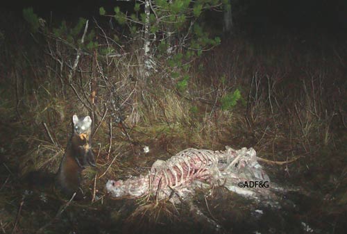 A marten investigates a carcass on the Forelands in the fall of 2011.