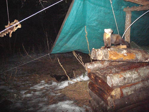 ADF&G biologists are monitoring animal activity at the site of wolverine live traps and documenting some unexpected visitors, including marten and brown bear. -
