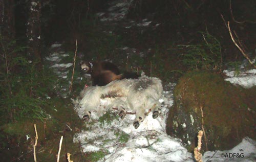 ADF&G wildlife technician Jeff Jemison aimed a remote trail camera at the carcass of a dead moose north of Juneau in the spring of 2010 and drew in a bear that had recently emerged from hibernation.