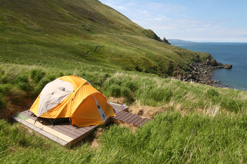 - Campsites: The Round Island camping area overlooks Bristol Bay looking toward Kulukak Bay and the Nushagak Peninsula. Swimming walruses are often seen from the camping area and on calm nights you may hear walrus grunting, bellowing and strumming. There are 8 campsites, where tents are pitched on 10 ft. x 10 ft. or 10 ft. x 12 ft. tent platforms located in slight depressions surrounded by tall grass. These are clustered in the campground area near the Cook Tent.