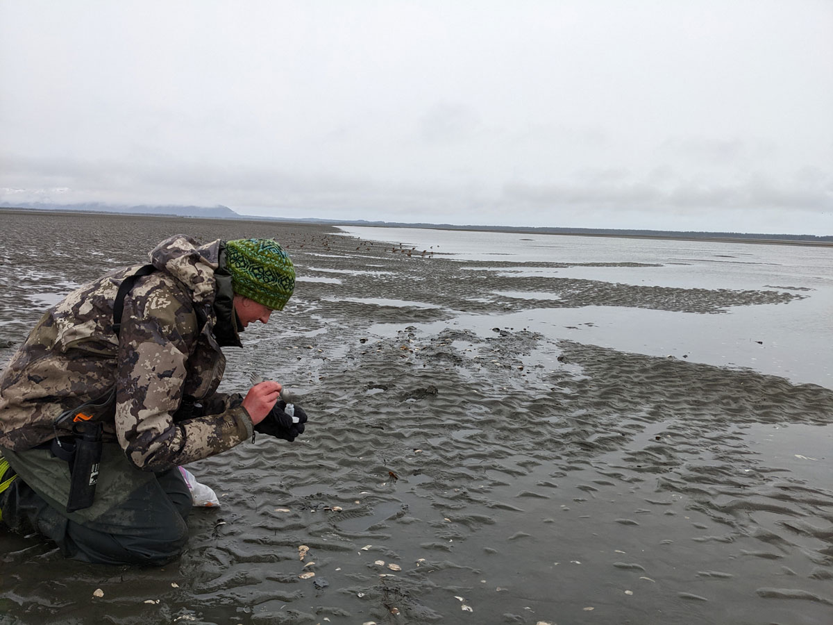 Pacific Red Knots (Calidris canutus roselaari) are a migratory shorebird species that breed in western and northwestern Alaska and overwinter in Mexico. Six subspecies of Red Knots are recognized across the globe, and several are in decline. The Pacific population of Red Knots has the smallest population size (currently ~22,000 birds) of all Red Knot populations and has been declining over the past four decades for unknown reasons. A study by the TED Program and US Forest Service is aimed at better understanding important areas of use for Red Knots during their migration. A site-specific study is occurring in Controller Bay, Alaska, which is a recently recognized stopover location during the spring migration. The goals of the study are to estimate the percent of the population that relies on Controller Bay as an important migratory stopover and to determine the diet of Red Knots in this bay. To-date, no studies have been conducted to determine Red Knot diet in the state of Alaska. Understanding this baseline information about Red Knot life history will allow ADF&G to make more informed decisions regarding the conservation of the species, help mitigate threats, and identify critical habitat that this shorebird relies on during their migration.
