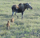 I moved as quickly as I could towards the sound of the helicopter hovering above the cottonwoods. I stumbled through the thick understory, scanning ahead for any movement. As the helicopter came into view through the tree tops, I knew I was closing in on my quarry, and things were about to get intense. The helicopter was hovering high over a day-old moose calf and her highly protective mother. Common sense and wisdom dictate that you should avoid getting between a cow moose and her newborn offspring. ... Capturing Wildlife Article Continued